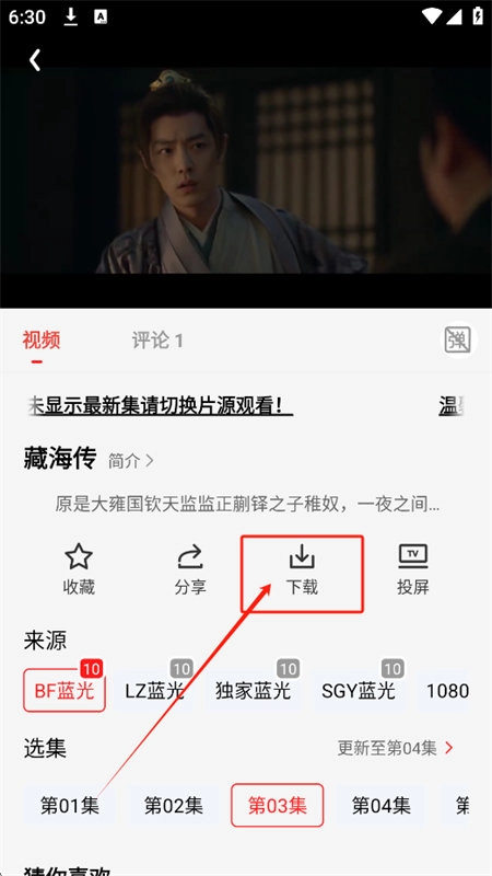 1、打开软件后选择想看的影视作品进入播放页面