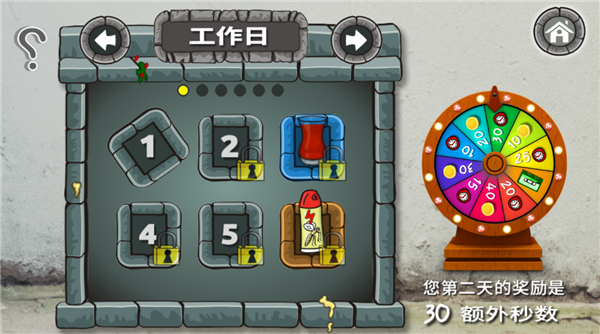 游戏采用闯关模式,每一关里面有一个金币目标,只需要在相应的时间内达到目标金币即可解锁下一关,当然它不是达到目标就不能玩,是可以继续玩的,至时间接受即可。随着进度的推进,可以解锁更多物品,例如饮料、汉堡包等,每通过一个关卡玩家是可以转动轮盘获得下一关内额外金币或额外时间以及工作音乐,原版转动轮盘是需要看广告的,法拉费之王版不需要!