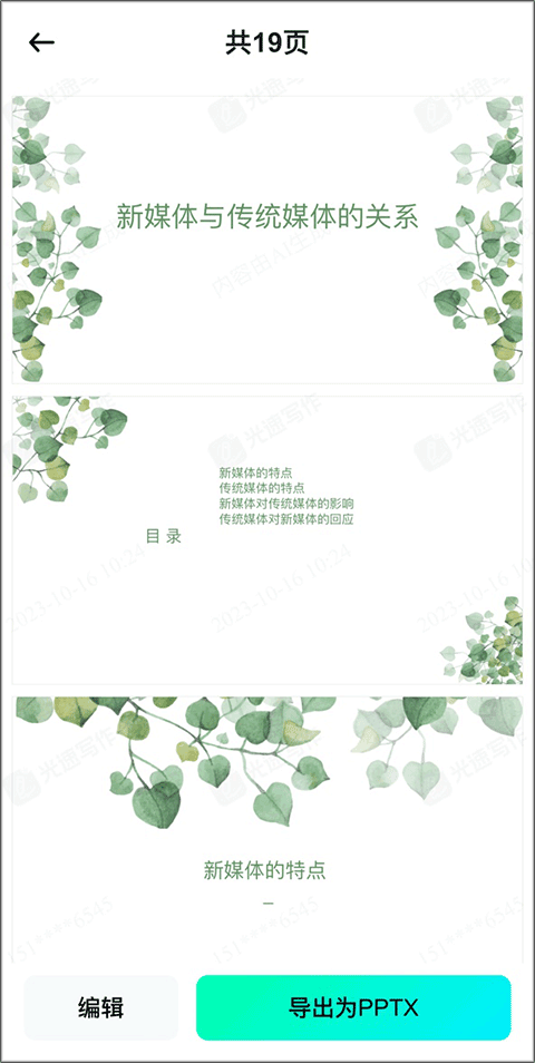 6、只需点击“导出PPTX”,就能把文档分享给好友。