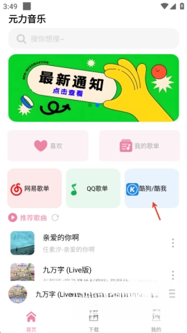 3、若想导入酷狗歌单,只需在首页点击酷狗图标,进入页面后按照提示输入酷狗码就行。