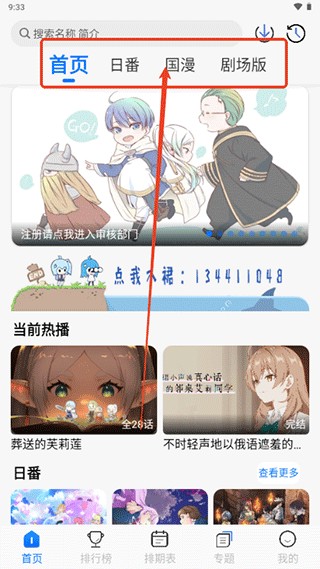 2. 在首页,你能够选择查看日漫、国漫,亦或是电影。