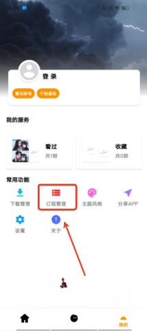 1、在“我的”界面,点击“订阅管理”,即可快速知晓你喜爱的剧集。