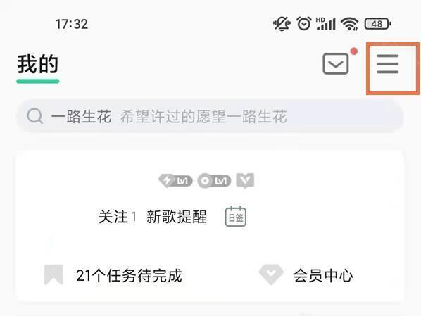 1、开启应用,在“我的音乐”板块点击右上角的三横线图标,从而进入更多页面。