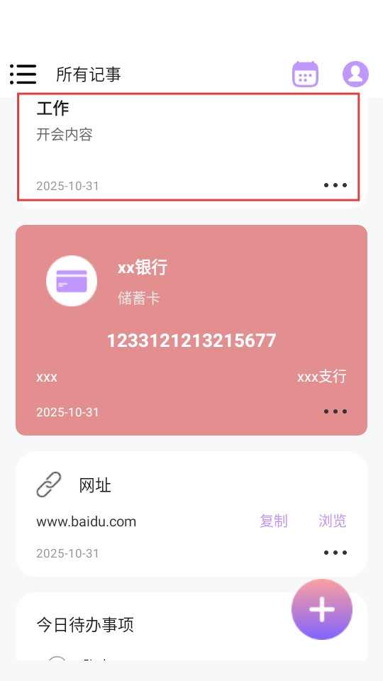 4、完成保存操作后,在任意记事页面都能够查看已保存的笔记条目。