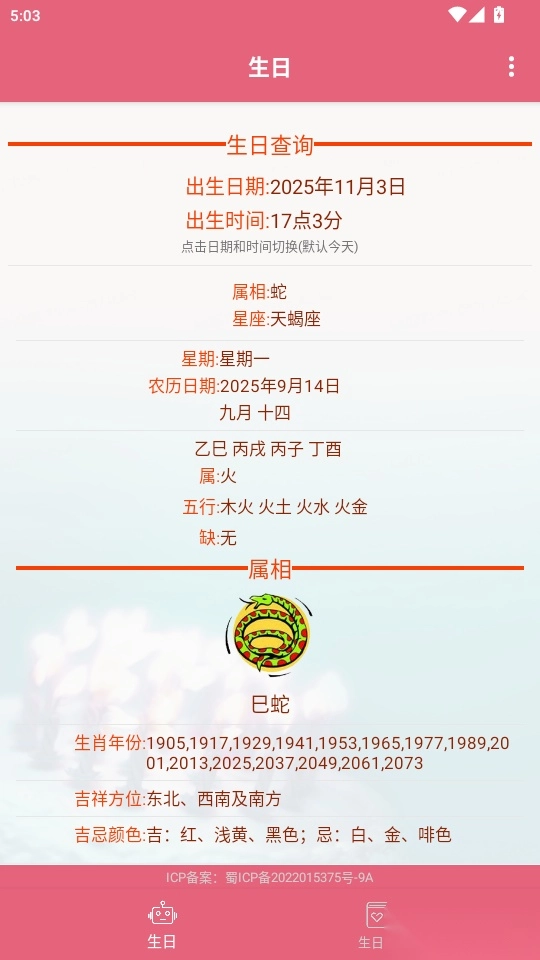 软件里的生辰查询工具实用性极强,能让用户便捷地随时在此查询并查看自身的生辰信息。