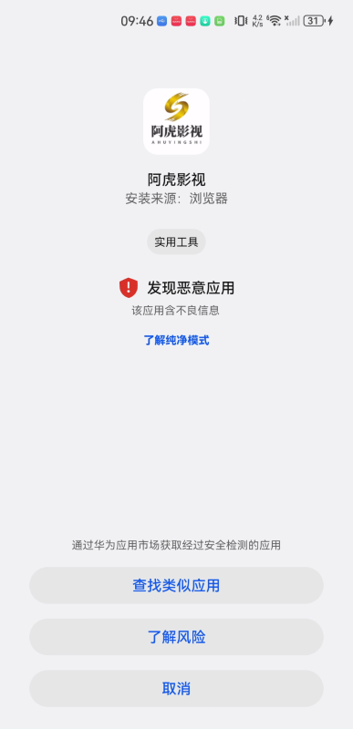 2、系统软件可能提醒该应用存有安全隐患,这通常是乱报,您可以放心点一下“掌握风险性”再次安装。