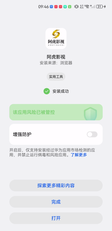 5、安装结束后,屏上会有“安装取得成功”提示,点一下“开启”即可进行应用。如果您想了解更多精彩文章,何不探寻一下运用里的其他功能哦!