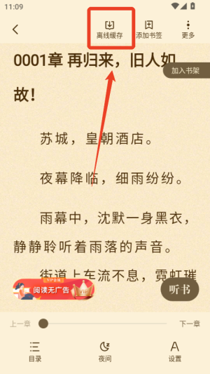 4、若您有听书或离线阅读的需求,点击对应的按钮,即可获取音频或缓存全文,方便您随时使用。