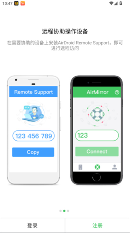3. 在另一台需要控制的远程设备上,下载并安装好AirMirror,注册好账号,如此便能实现双端互通,随后进行远程控制即可。