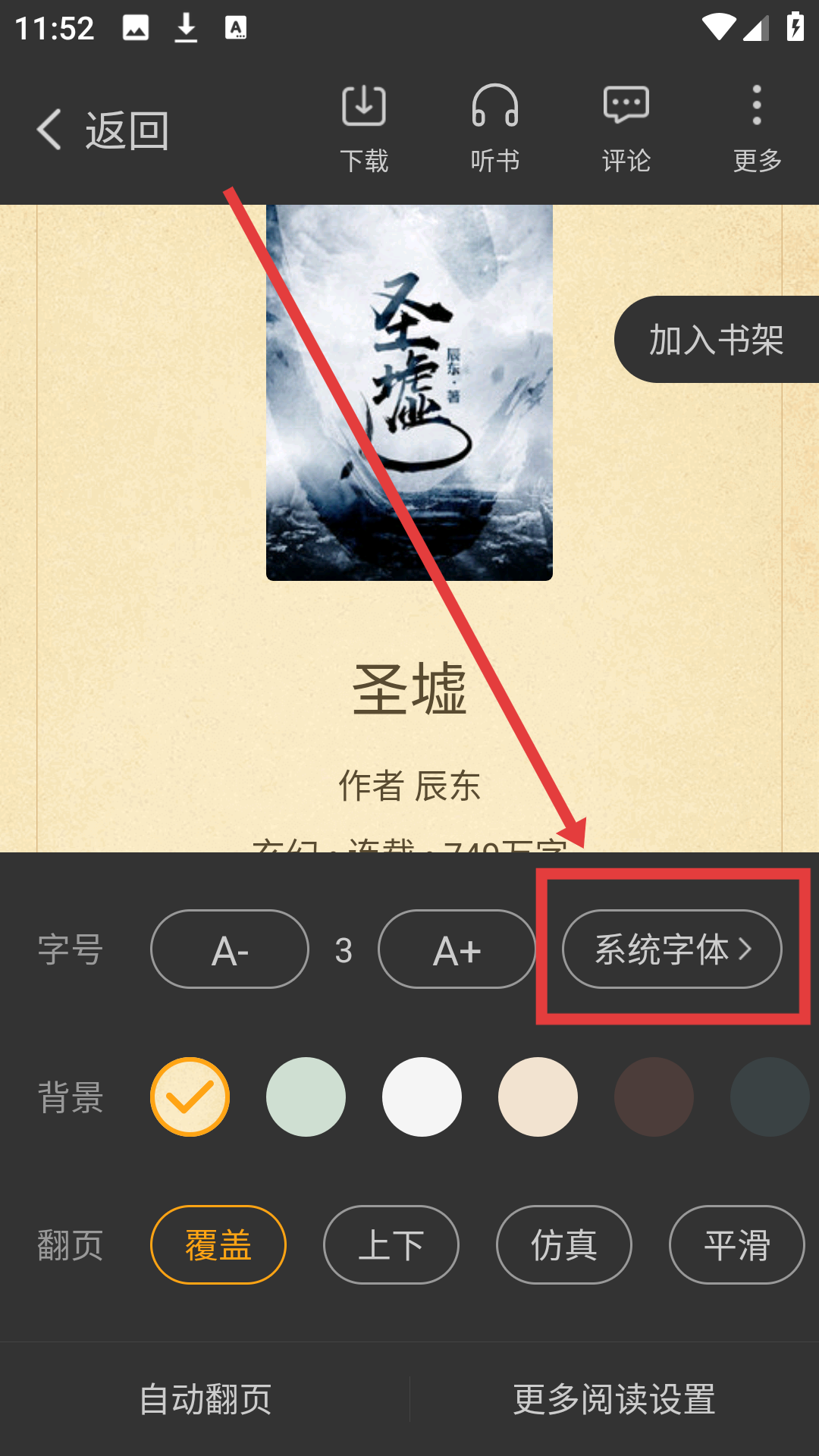 3、进入设置,点击【系统字体】,就可以更换阅读字体的样式啦。