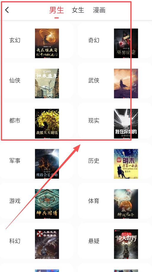 1若想高效找书,进入“书城”后,可直接点击“男生”或“女生”频道,这两个频道内又细分为玄幻、都市、历史等十余种类型。