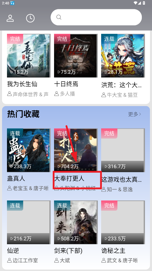 通过搜索框输入书名或作者名,可以快速找到想要听的书籍。