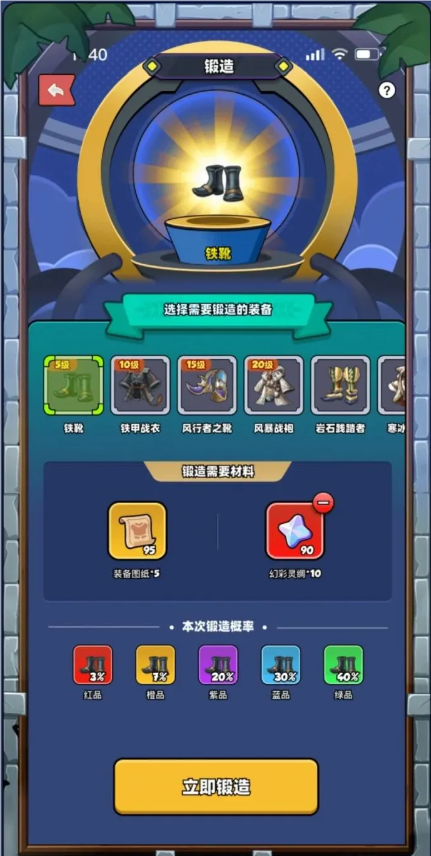 通过锻造可获得更高级的装备,穿戴后能提升大量战力