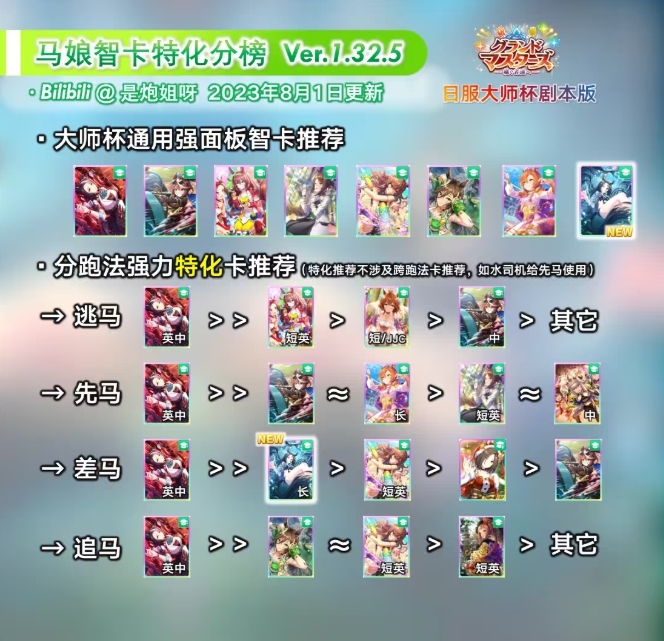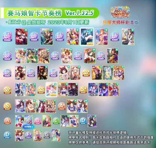 节奏榜的核心价值在于提供强度参考,能满足大部分玩家日常(包括大赛)的使用需求,但它并非自选券和彩突决策的唯一标准。若有这方面的需求,大家可以参考我的彩突自选券使用攻略。由于强度榜的综合性较强,而赛马娘的玩法又十分丰富,所以在选择卡片前,建议结合自身的游戏目标,向有经验的朋友或群友咨询,获取更具针对性的建议。