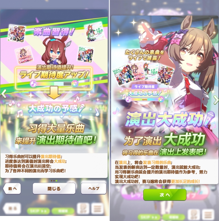 每场Live的期待度最多能累积三次,累积到上限后,本次Live的结果就会变成大成功;期待度满了之后,依旧可以学习乐曲。