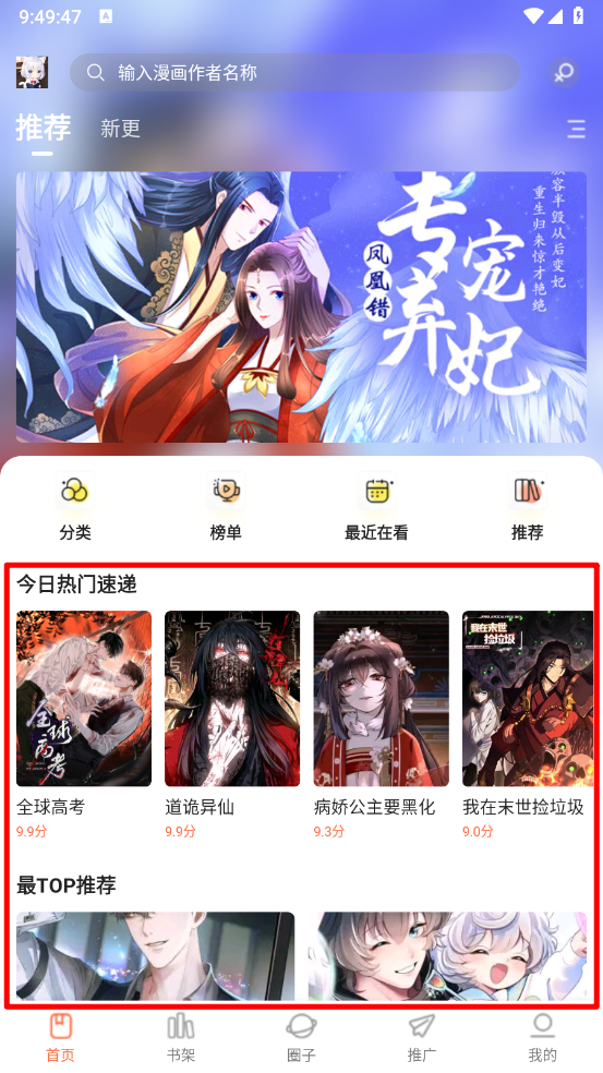 2、圈子功能为用户提供了交流空间,便于大家与趣味相投的读者进行互动,分享阅读体会,有效提升了社交感受。3、系统会根据用户的阅读历史与偏好,精准推送个性化漫画内容,以此有效提高用户的使用满意度。