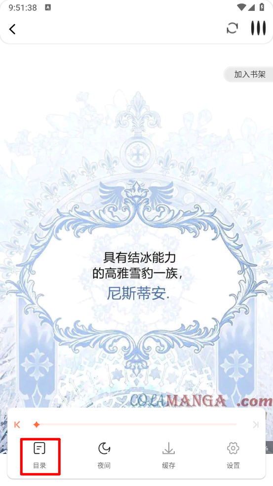 6最后,进入阅读页面后,轻点屏幕中间部分就能调出操作菜单,此时点击左下方的“目录”选项即可浏览相关内容。