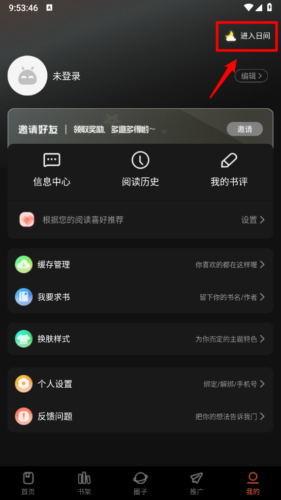 3、如图所示,夜间模式已成功启用,若需切换回日间模式,再次点击即可。