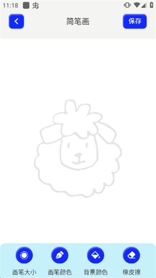 2. 在简笔画界面中,你可以按照自己的需求随意调整画笔的尺寸与颜色,并且还能更改背景颜色。绘画操作不支持撤回,不过可以借助橡皮擦工具来进行擦除清理。