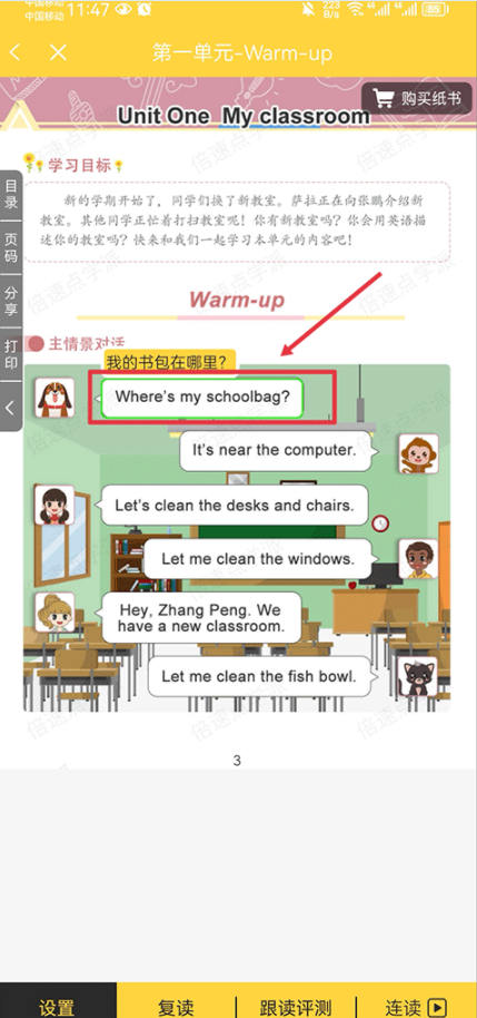 4、在首页点击添加的课本一键打开,选择点读的单元。