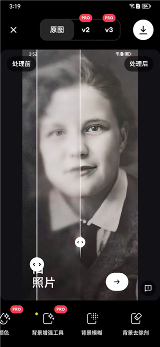 1、借助先进的人工智能技术,软件能够直接把老旧照片里模糊的脸部优化成高清肖像。