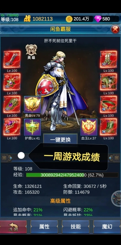 第一周,等级108级,战力108万