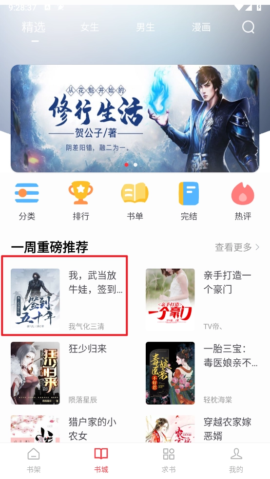 1、打开快搜阅读器,在书城中选择所需的小说。