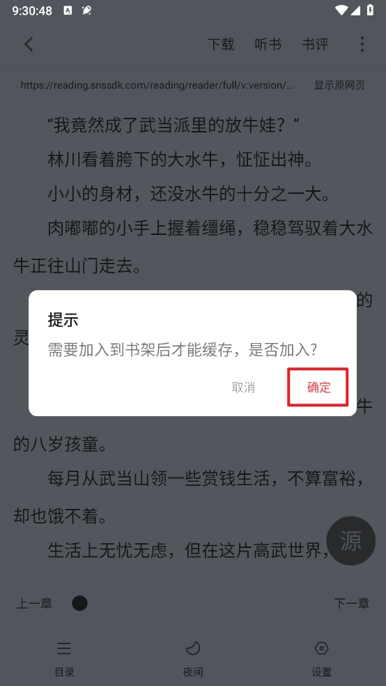 5、弹出提示框,需要加入到书架后才能缓存。