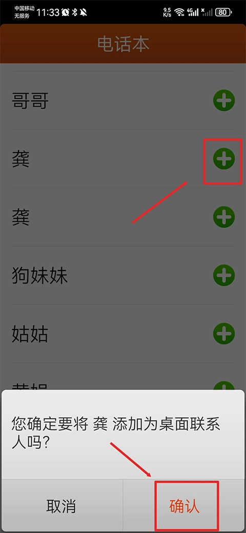 3接下来找到联系人旁的加号按钮点击,再确认一下操作,就能完成导入了。