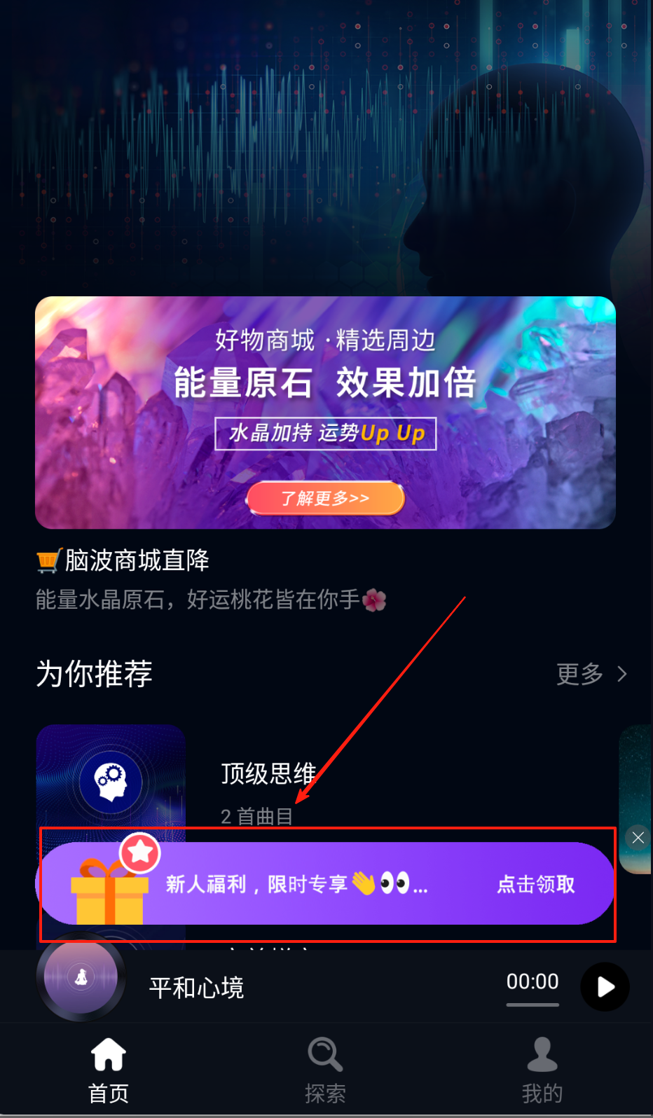 1、注册后即可获赠三首精选脑波,建议连接WiFi确保音质无损。