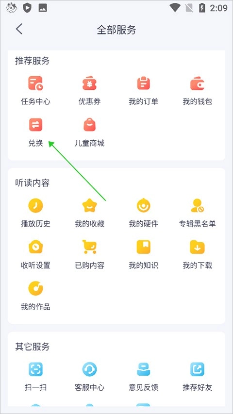 2、在打开的新页面中点击兑换