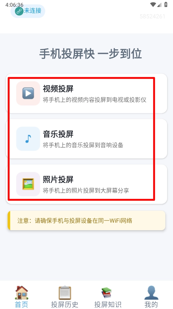 注意:请确保手机与投屏设备在同一WiFi网络