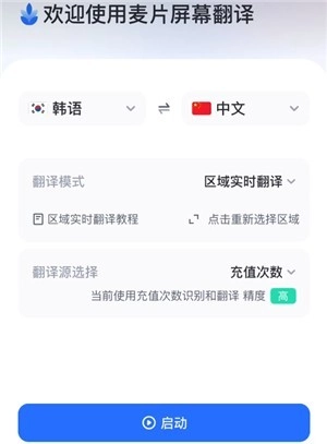 1、打开麦片屏幕翻译,在首页设置想翻译的语种。
