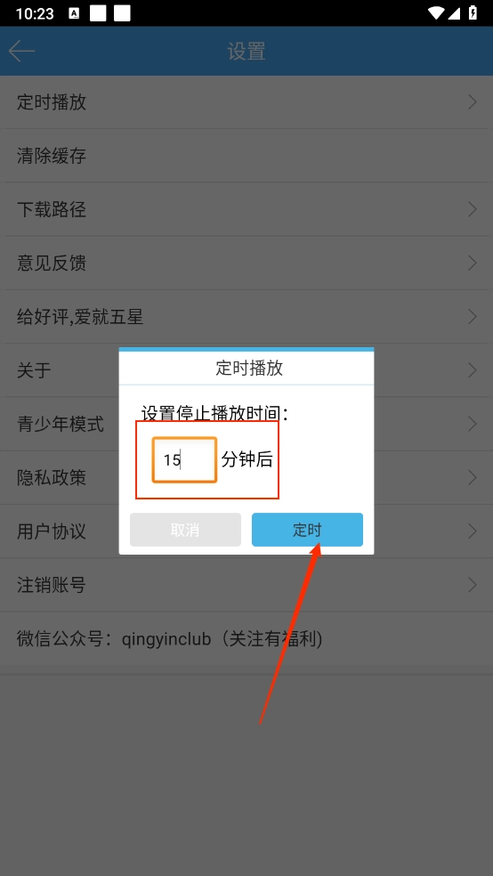 3、最后按照个人需求输入播放时间,再点击“定时”按钮就可以了。
