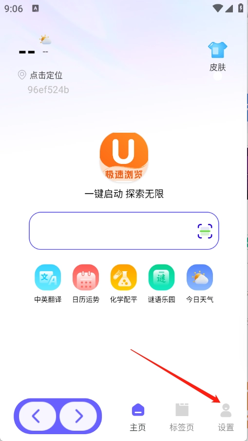 2、进入首页后,在输入框中输入关键词或网址页面。