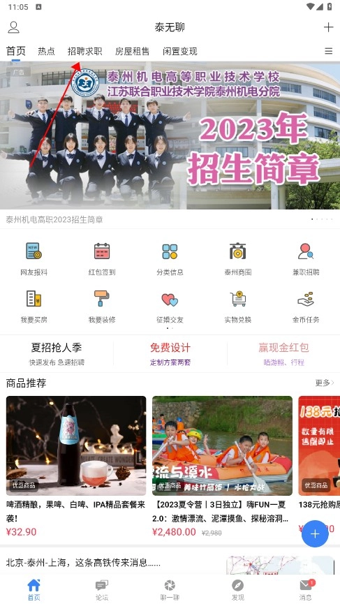 2、点击上方的【求职招聘】选项,进入求职招聘页面