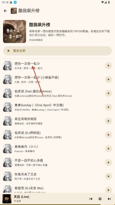 3. 点击歌曲右侧的“添加”按钮,或者长按该歌曲并选择“添加到歌单”选项,随后在弹出的列表里选中刚刚创建好的歌单。