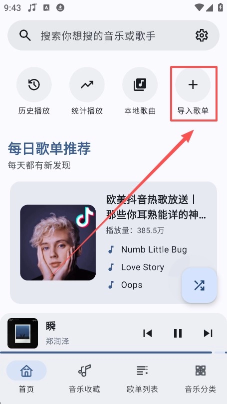 1. 启动听点音乐应用程序,进入首页后点击导入歌单的按钮