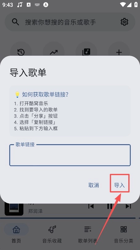 2.后在框框中,输入歌单链接