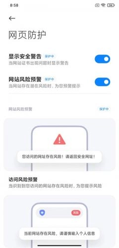5、将显示安全警告和网站风险预警关闭即可,温馨提示,最好是开启状态,这样能更好的保护您的浏览安全。