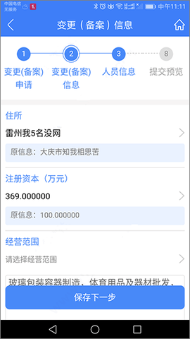 4、选择办理流程“变更(备案)申请,选择变更内容,这里为了演示,选择了所有可变更项