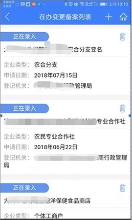 3、选中企业,办理变更业务,进入办理流程,点击垃圾桶图标,删除该企业变更办理业务