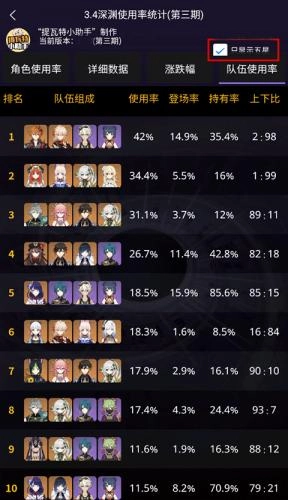 1、首先打开提瓦特小助手中文版,在更多功能模块点击队伍使用率排行;