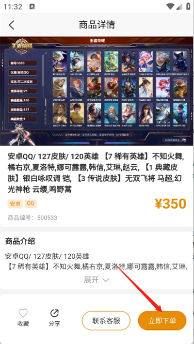 4、用户点开需要的游戏账号,点击“立即下单”即可。