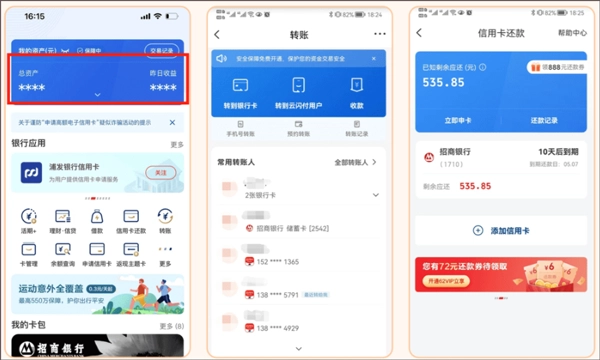 只要绑定在云闪付的银行卡,储蓄卡余额,信用卡账单轻松查,还款转账通通零手续费!
