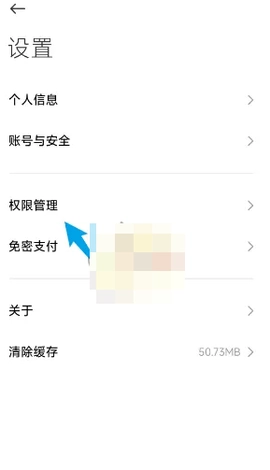 2、然后进入到设置后点击权限管理选项。