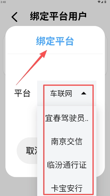 在首页页面的常见功能中找到多车监控,按照指示绑定平台用户,点击三角图标展开平台列表,选择绑定后继续添加账号信息,完成绑定。
