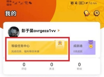 3.进入等级任务中心:在“我的”页面中,找到并点击“等级任务中心”。