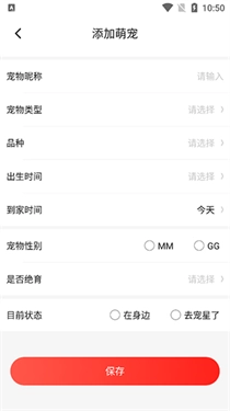 2、宠物档案创建完成后,可在详情页里依据实际需要逐步补充完善各类信息,像品种、生日、绝育情况这类基础资料都能进行完善。