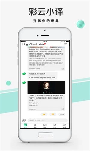 彩云小译是一款广受欢迎的移动翻译应用程序,这里支持众多语言,用户只需轻触屏幕即可实现智能识别,翻译准确度极高。用户可以上传文档,软件将迅速完成翻译工作,其独特的对照翻译功能允许用户直接在原文上进行校对和修改。此外,该平台还提供了横屏模式以及语音输入和拍照翻译的功能,用户可以轻松地将翻译结果通过一键分享发送给朋友,操作非常便捷。